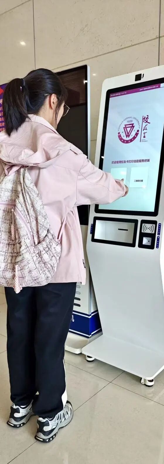 校友在注册电子校友卡后,携带身份证或凭小程序二维码,前往呈贡校区行政楼一楼、图书馆大厅、东区学生实训中心的校友卡制卡机,扫描校友电子卡二维码或身份证,可现场打印实体卡片。