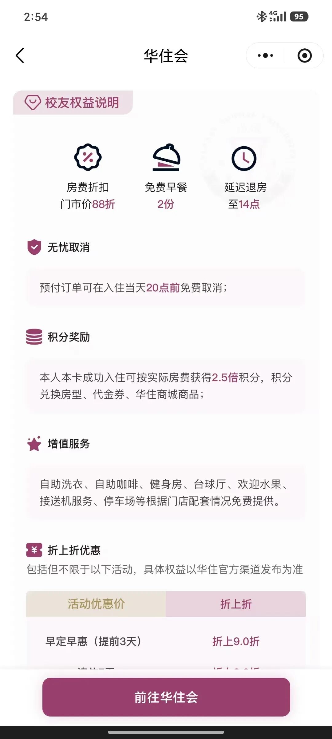 享受房费88折、免费双早、延迟退房、预定保留、多倍积分等多重福利