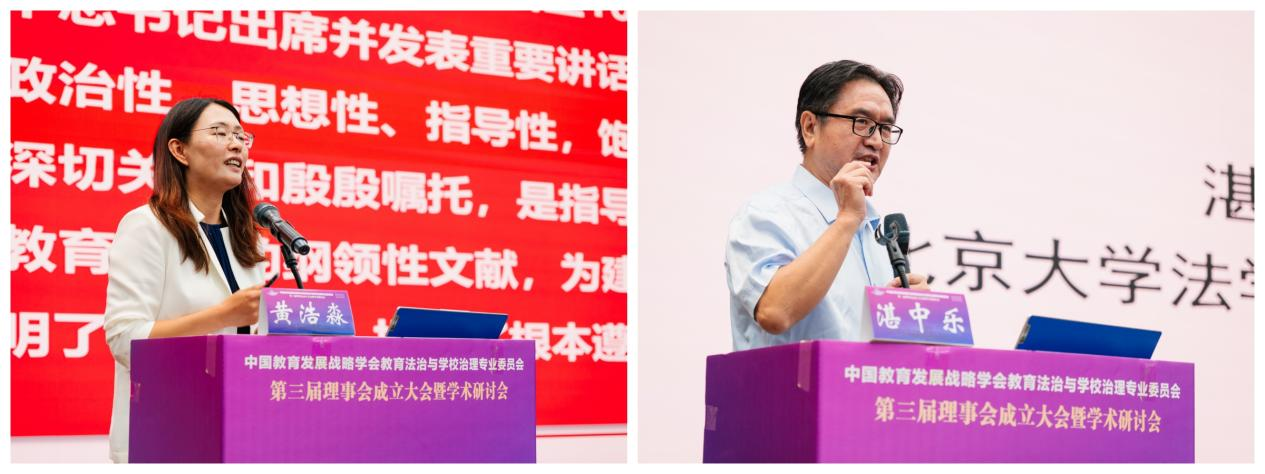 在主旨报告阶段,教育部政策法规司宏观政策处处长黄浩淼和北京大学法学院教授湛中乐分别作了题为《加快推进教育强国建设的思考》和《教育强国建设的法治逻辑与优化路径》的报告。