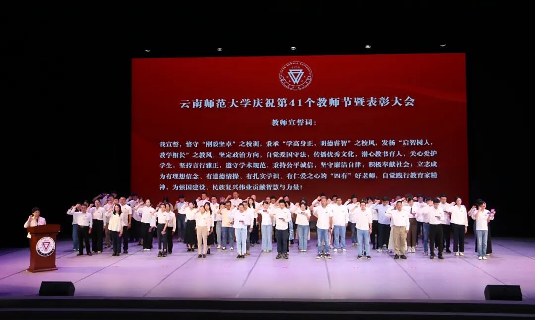 教育大计,教师为本。9月10日下午,云南师范大学呈贡校区举办庆祝第41个教师节暨表彰大会,表彰为学校建设发展作出贡献的优秀教师个人和集体,并为从教35年的教师和新进教师举行荣休及入职典礼。与会师生共同聆听优秀教师的感人故事,深切感受教育的力量与温度。