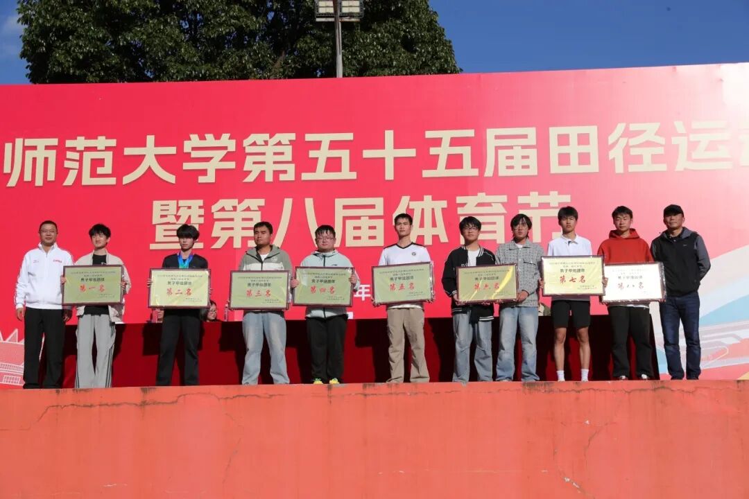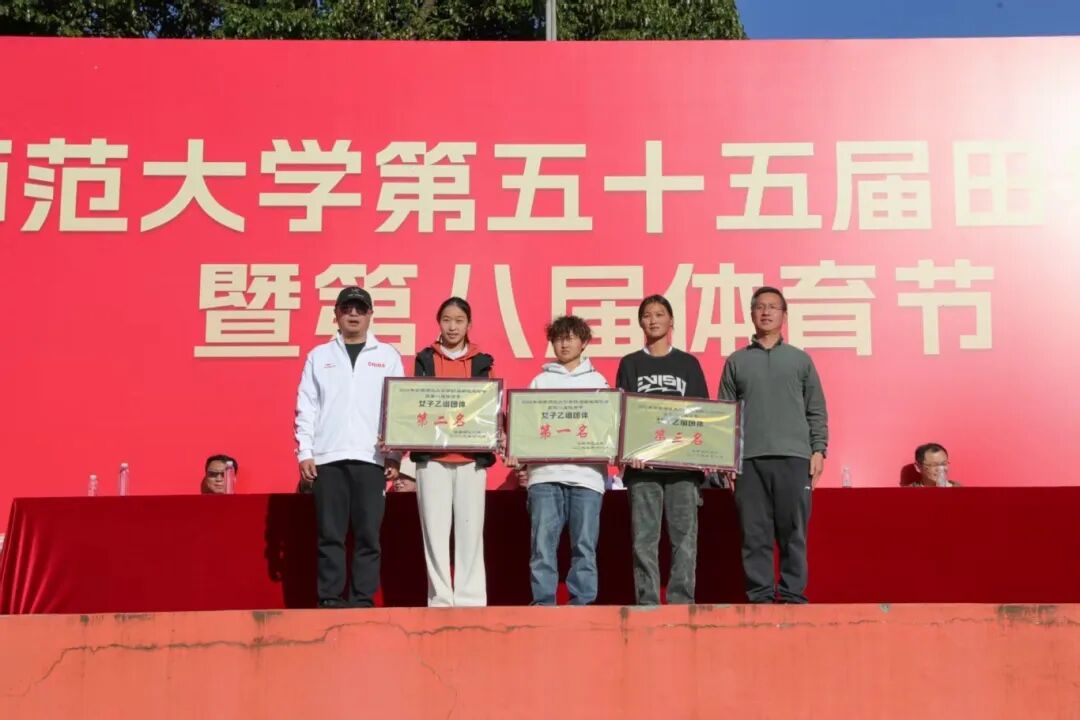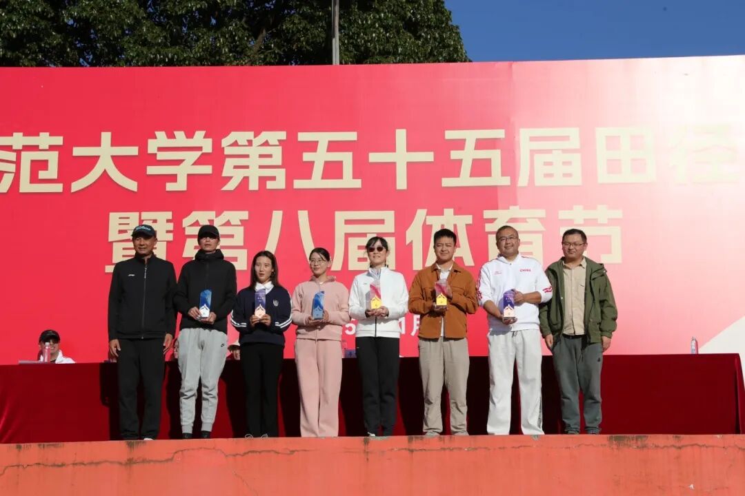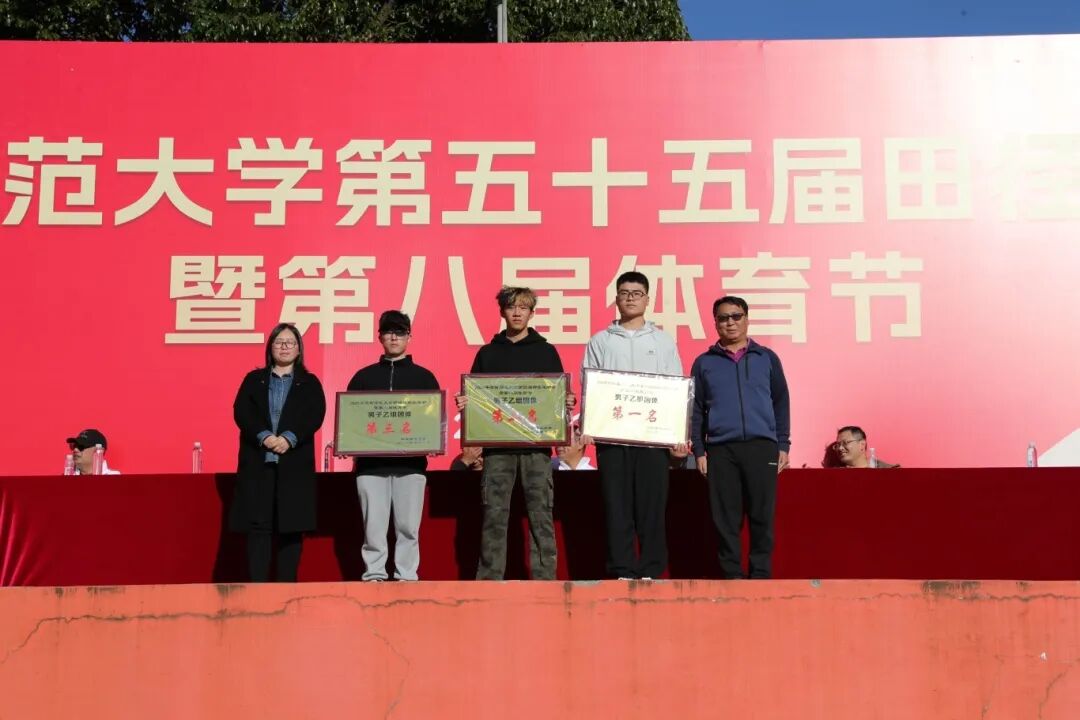 田径运动会赛事主管助理杨杰宣布甲组男、女团体前八名,乙组男、女团体前三名,校工会副主席贺雩宣布第二十届教职工气排球获奖单位,体育学院党委书记华致雄宣布获体育道德风尚奖的单位。出席闭幕式的领导为获奖单位颁奖。体育学院副院长李翼飞宣读本次田径运动会破纪录情况。