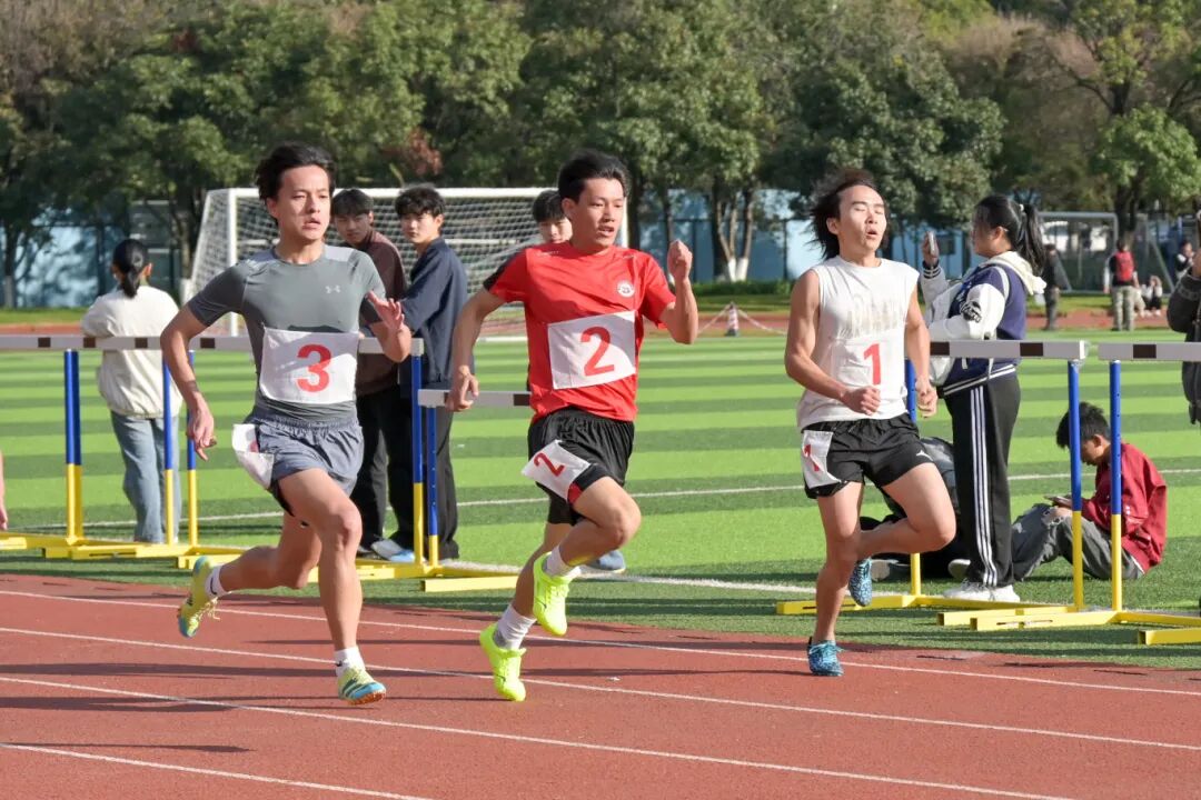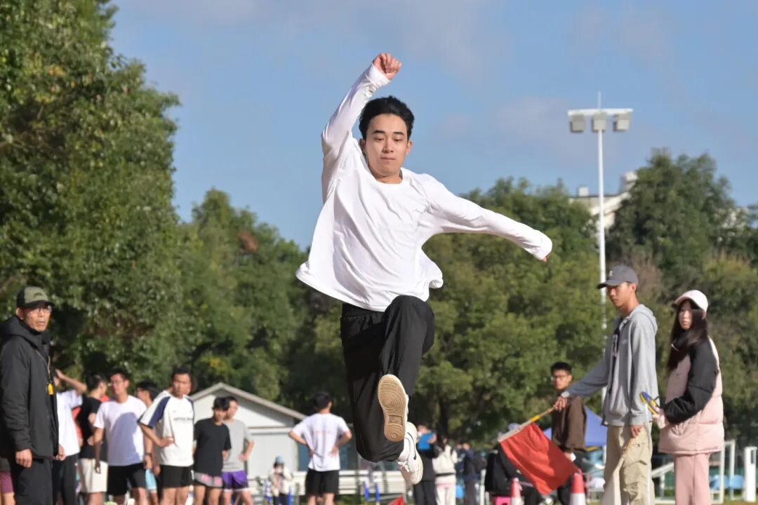 本次运动会共计产生金、银、铜牌各57枚。在乙组男子200米比赛中,体育学院2025级运动训练专业黄涛同学以21秒27的成绩打破21秒37的校纪录。