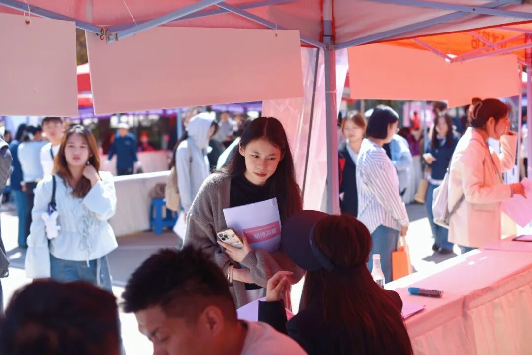 本次招聘会不仅搭建了高效的供需对接平台,还为毕业生提供了全方位的就业指导服务。我校19个生涯工作室组成“求职加油站”,为毕业生开展政策宣传、职业规划等一对一咨询服务。来自教育学部2025级的志愿者常娜激动地说:“我不仅能为大家答疑解惑,也提前了解用人单位的招聘标准,明确了学习重点,合理规划就业方向,将来求职时也会更加从容自信。”